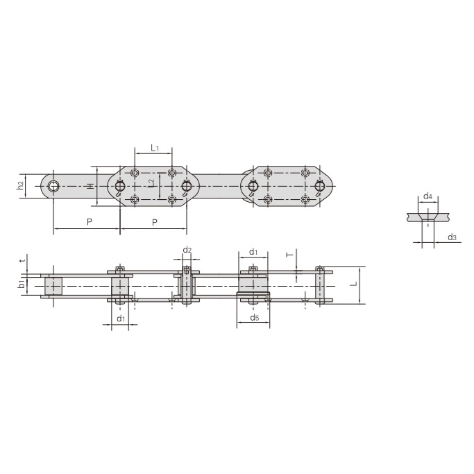 - Alta estabilidade:Cada rolamento é composto por um pino e uma manga, permitindo que os roletes girem suavemente. O design articulado permite que a corrente suporte alta pressão e impacto, mantendo a estabilidade e o transporte confiável.
