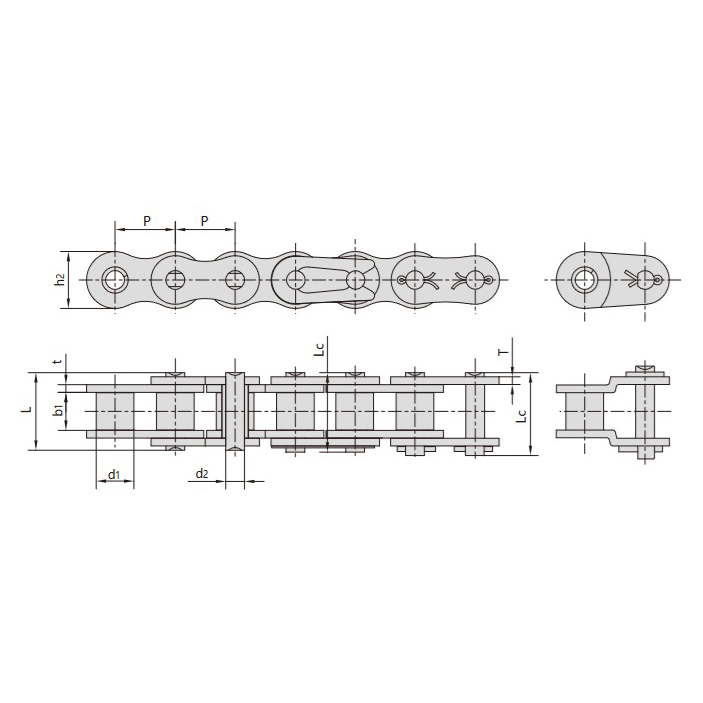 - Dimensões padronizadas:Compartilha as dimensões paramétricas das correntes de rolos da série Heavy Duty, garantindo desempenho consistente e compatibilidade durante atualizações ou substituições.