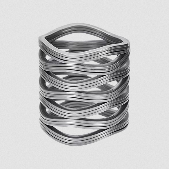 Molas onduladas escalonadassão componentes avançados de molas projetados através do enrolamento de vários pares de molas onduladas superiores em configurações em série e paralelas. Esse design exclusivo oferece elasticidade superior, alta capacidade de carga e excelente amortecimento de vibrações, tornando as molas onduladas escalonadas ideais para aplicações que exigem grandes cargas e cursos longos.