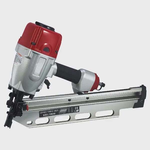 Princípio de funcionamento da pregadeira pneumática para estruturas:A pregadeira pneumática é alimentada por ar comprimido. Quando acionada, o fluxo de ar entra rapidamente no cilindro, empurrando o pistão para baixo em alta velocidade e acionando o pino de disparo para atirar o prego na madeira. O sistema de exaustão libera então o excesso de gás para reiniciar o pistão para o próximo disparo. Graças ao prego em ângulo de 28°, o prego entra no material em ângulo, melhorando a estabilidade da junta e reduzindo a chance de rachaduras na madeira. O design de explosão knockout permite pregar continuamente sem soltar o gatilho, aumentando consideravelmente a eficiência.Áreas de aplicação da pregadeira pneumática para estruturas: