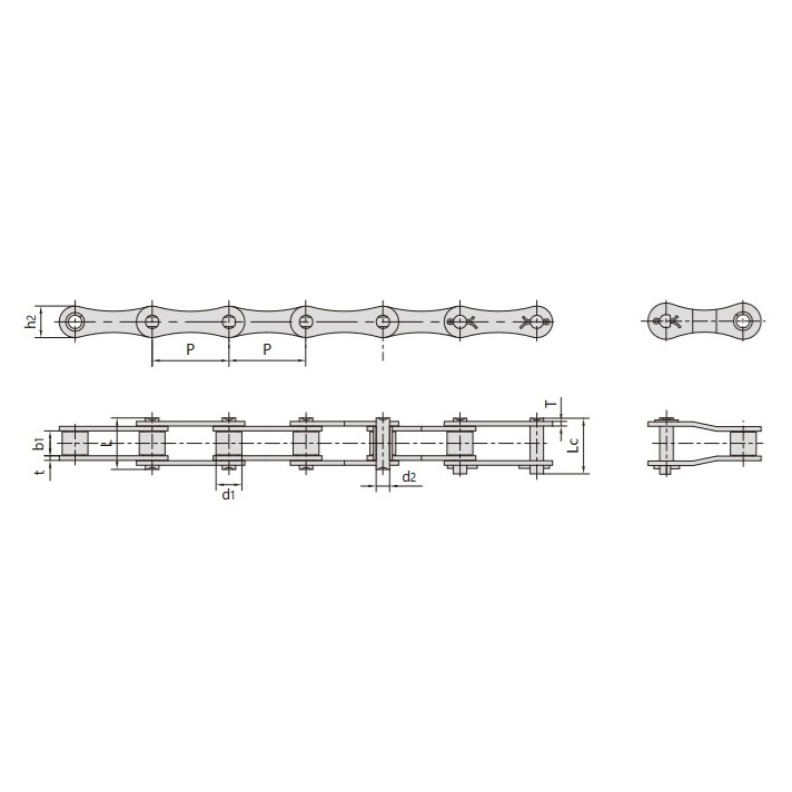 - Design de passo duplo:O passo da corrente é o dobro do passo padrão das correntes de rolos de passo curto, tornando-a mais leve, mas mantendo a resistência. Ideal para distâncias de transporte mais longas, velocidades mais baixas e distâncias centrais de transmissão mais longas.