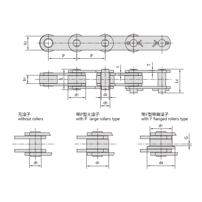 A corrente transportadora da série Z é um tipo de sistema de corrente amplamente utilizado no transporte de materiais, que está em conformidade com a norma BS e é dividido principalmente em corrente transportadora do tipo Z, corrente transportadora do tipo ZE e corrente transportadora com pinos ocos do tipo ZC.